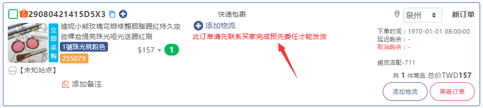 注意:当买家进行预先委任后,此处的提醒会消失。因为预先委任状态更新会有一定的延迟,所以具体以虾皮后台订单状态为准。