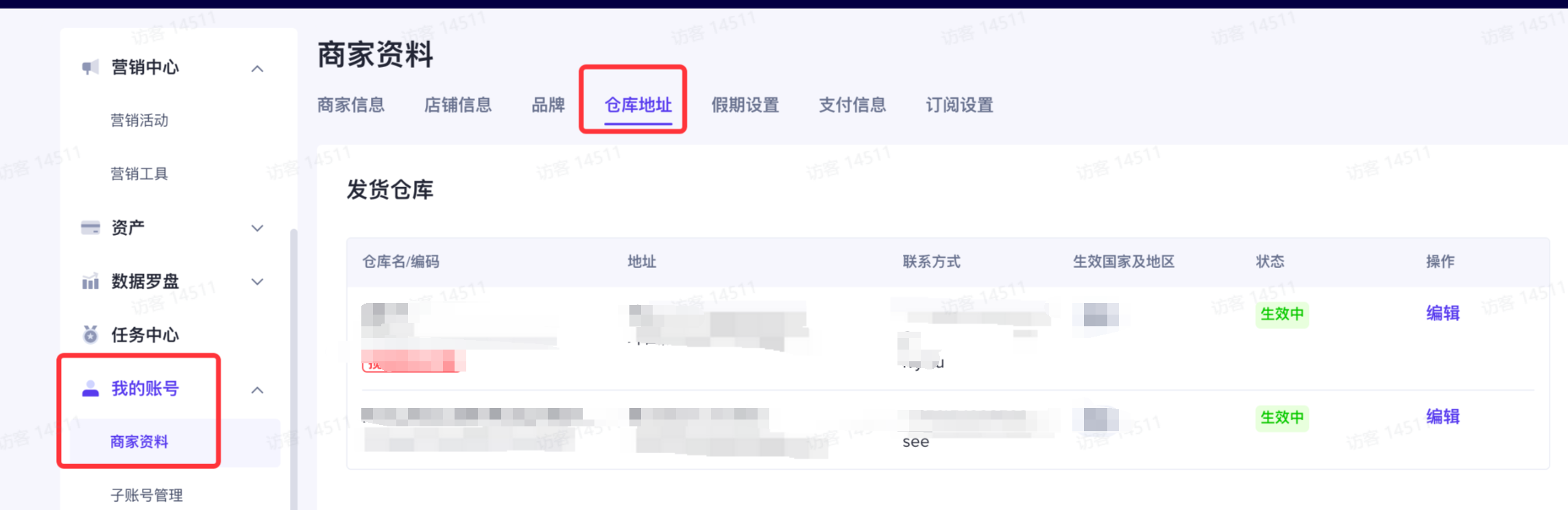 发货仓库修改路径 :TikTok Shop Seller Center 我的账号-商家资料-仓库地址