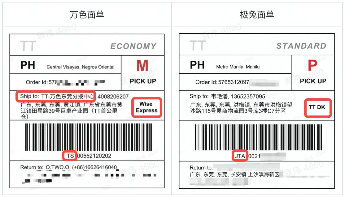 当运单号为TS开头的即为万色面单